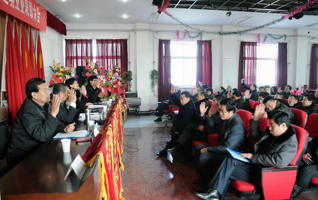 大会在庄严的国歌声中拉开了序幕,首先由乐鱼leyu(中国)副总经理要保林做《二零一零年度工作总结(草案)》,总会计师于广志做《二零一零年度财务工作报告》,监事会主席闫双彦做《二零一零年度财务审核报告》,副总经理谷进宝做《二零一零年工作安排意见的报告(草案)》,工会主席黄春玲做《二零一零年度职代会工作总结及二零一一年度工作安排报告(草案)》。随后全体与会代表对上述报告进行举手表决,均全票通过。会后,乐鱼leyu(中国)董事长兼党委书记张兰柱同志做重要讲话,总结了乐鱼leyu(中国)在二零一零年工作中的经验与不足,激励广大职工、股东代表在新的一年里为企业的快速发展继续作好排头兵、发挥表率作用,与广大员工一起为乐鱼leyu(中国)贡献力量。
