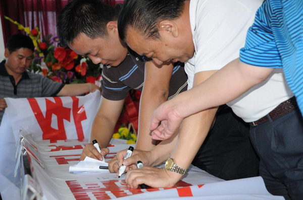 乐鱼leyu(中国)领导及管理人员在安全宣传标语上签名 |