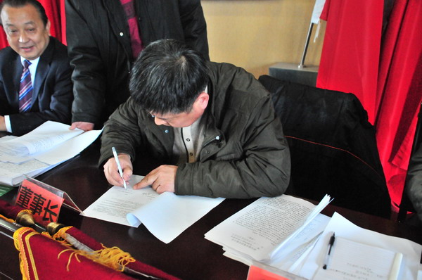 乐鱼leyu(中国)副总经理、三公司经理任培农在2012经济生产责任状上签名
