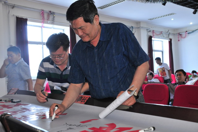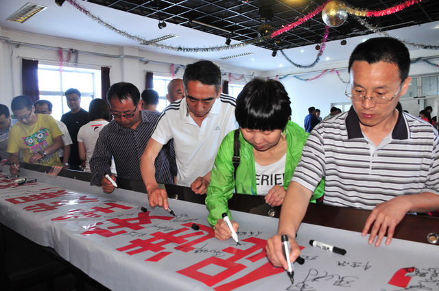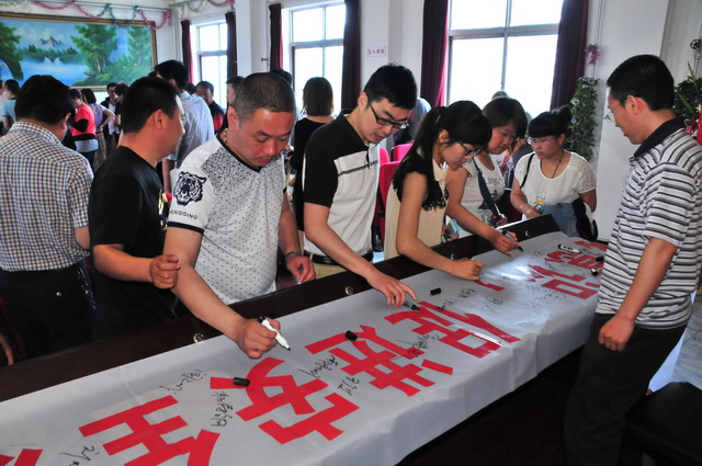 参会人员在“强化红线意识,促进安全发展,落实安全规章”条幅上签字。